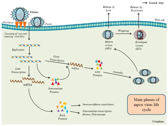 - Karagoz, A.; Tombuloglu, H.; Alsaeed, M.; Tombuloglu, G.; AlRubaish, A.A.; Mahmoud, A.; Smajlović, S.; Ćordić, S.; Rabaan, A.A.; Alsuhaimi, E. Monkeypox (mpox) virus: Classification, origin, transmission, genome organization, antiviral drugs, and molecular diagnosis. J. Infect. Public Health 2023, 16, 531–541. [Google Scholar] [CrossRef] [PubMed]
