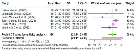 - Martins-Filho, P.R.; Tanajura, D.M.; Alves dos Santos, C. Polymerase chain reaction positivity and cycle threshold values in biological samples from patients with monkeypox: A meta-analysis. Travel Med. Infect. Dis. 2022, 50, 102448. [Google Scholar] [CrossRef] [PubMed]