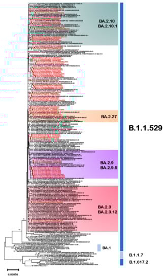 3.4. SARS-CoV-2 Omicron Sublineage BA.2 Genetic Characterization