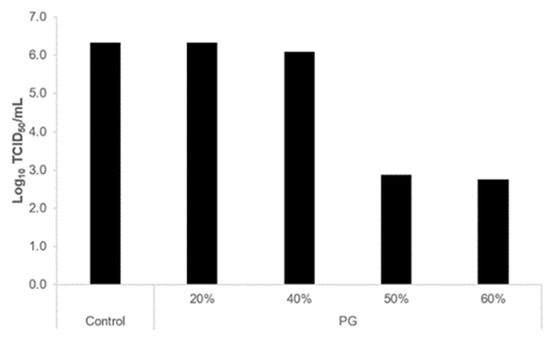 25]. In animal experiments, the death rate of influenza-virus-infected mice decreased by exposure to a concentration of 1 g of PG per 2,000,000 mL of air (0.5 mg/L) [