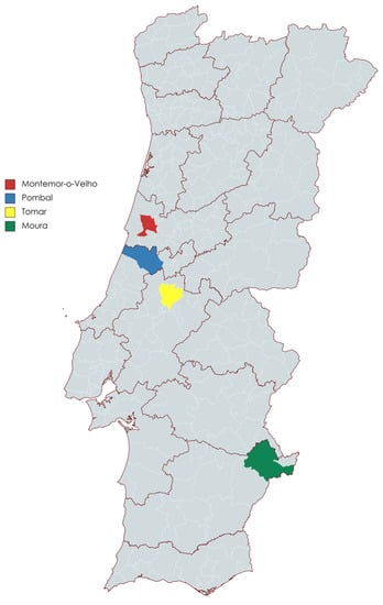Selected sampling locations in Portugal used in this study.
