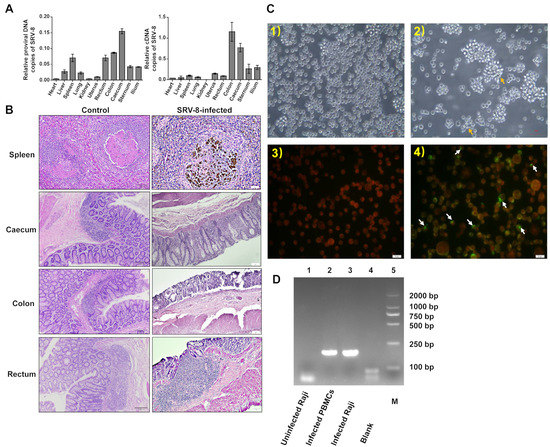 3.2. Tissue Specificity and Pathology of SRV-8 Infection