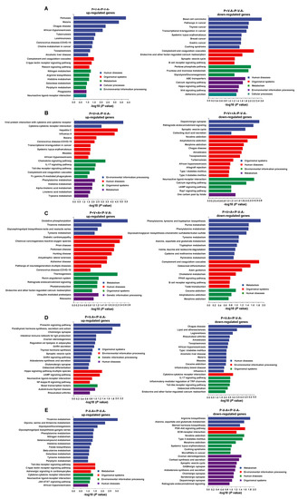 - Love, M.I.; Huber, W.; Anders, S. Moderated estimation of fold change and dispersion for RNA-seq data with DESeq2. Genome Biol. 2014, 15, 550. [Google Scholar] [CrossRef]