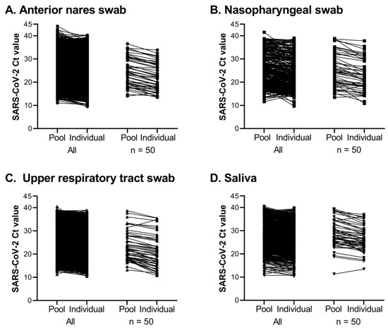 If a SARS-CoV-2 FAM Ct value was detected for a pool, each constituent sample of that pool was tested individually (