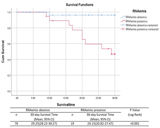 | Characteristics | Total (n = 95) | RNAemia Presence (n = 19) | RNAemia Absence (n = 76) | p-Value |