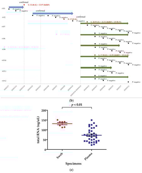 3.2. Both Swab and Plasma Specimens Can Be Performed and Detected by Commercial RT-qPCR