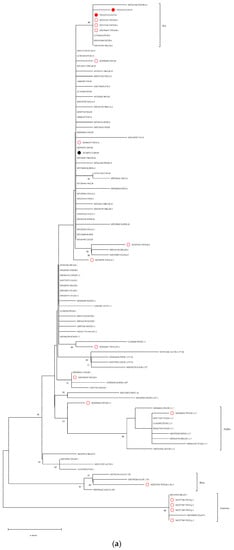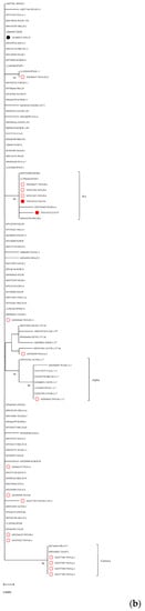 - Tamura, K.; Stecher, G.; Kumar, S. MEGA 11: Molecular Evolutionary Genetics Analysis Version 11. Mol. Biol. Evol. 2021, 38, 3022–3027. [Google Scholar] [CrossRef]