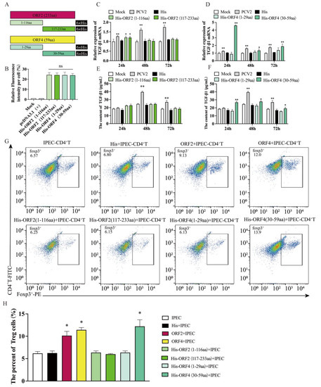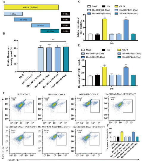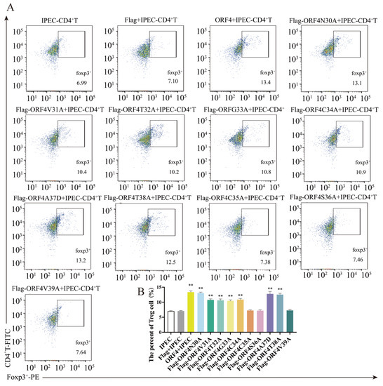 3.3. Overexpression of ORF4 (30–59aa) in IPEC-J2 Enhanced the Frequency of Tregs