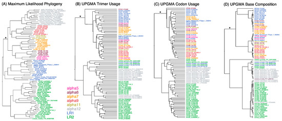 - Mooers, A.O.; Holmes, E.C. The evolution of base composition and phylogenetic inference. Trends Ecol. Evol. 2000, 15, 365–369. [Google Scholar] [CrossRef]