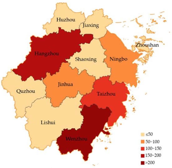 The economic burden of dengue may be associated with the regional economic situation. The total per capita cost of dengue cases in this study was CNY 4232.61 in 2019, which was 3.93% of the per capita Gross Domestic Product (GDP) in Zhejiang Province during the same year. A study in Guangdong Province showed that the average cost of dengue cases was about 3.71% of the per capita GDP in the region []. The level of healthcare services and medical costs will be higher in areas with relatively developed economies, and the cost of disease treatment will account for a larger proportion of the total dengue cost []. In addition, residents in areas with high levels of economic development have higher incomes, have a greater awareness of healthcare for the disease and are more willing to bear the cost of disease prevention [].