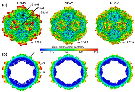 3.2. Determination of the CnMV, PBoV1, and RBoV Capsid Structures
