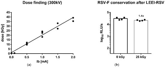- Bayer, L.; Fertey, J.; Ulbert, S.; Grunwald, T. Immunization with an adjuvanted low-energy electron irradiation inactivated respiratory syncytial virus vaccine shows immunoprotective activity in mice. Vaccine 2018, 36, 1561–1569. [Google Scholar] [CrossRef]