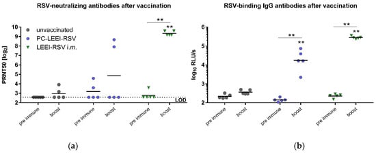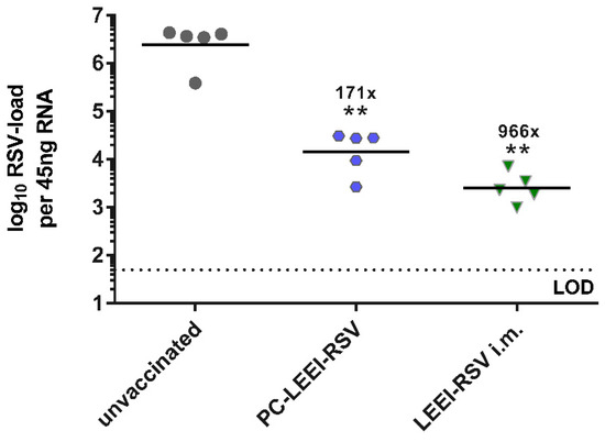 3.3. PC-LEEI-RSV Induces Immune Responses and Protection in Mice after Vaccination