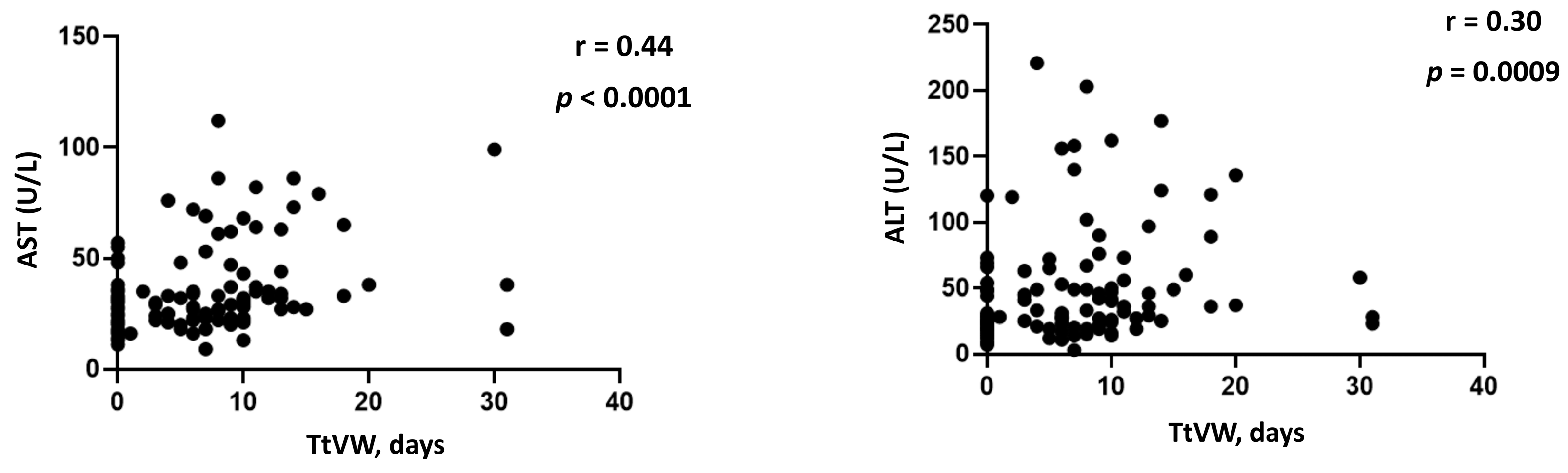 3.3. Liver Abnormalities and Length of Respiratory Support