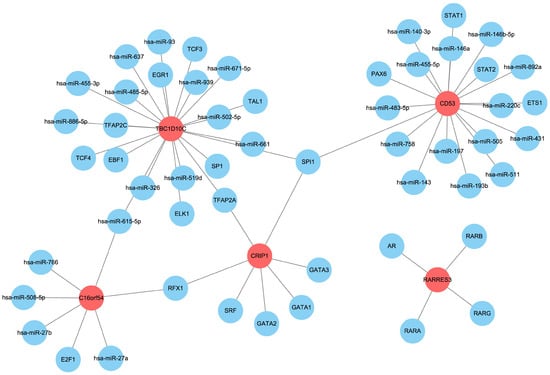 3.8. Prediction of Upstream miRNAs and Transcription Factors of the Hub Genes