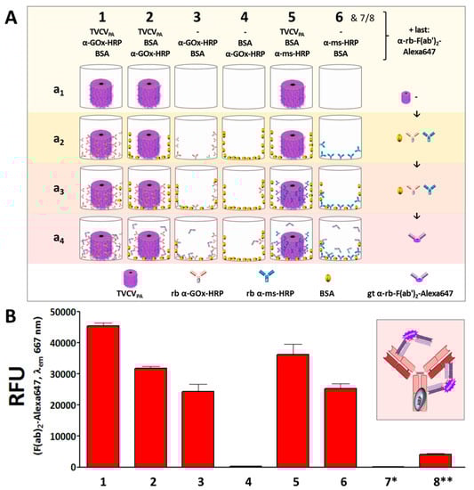 2.4. Antibody-Mediated Immobilization of Enzymes or Control Protein on TVCVPA on Microtiter Plate Surfaces and Activity/Functionality Measurement