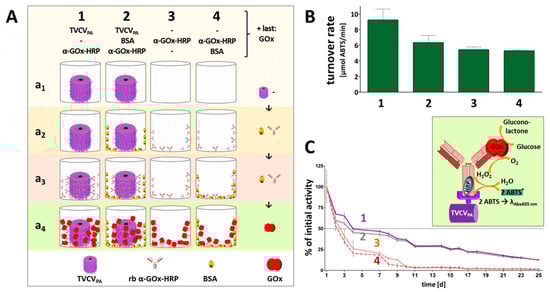 3.4.1. Anti-GOx Antibodies Conjugated with HRP Are Immobilized to Superior Amounts in Microtiter Plates via TVCVPA Adapters
