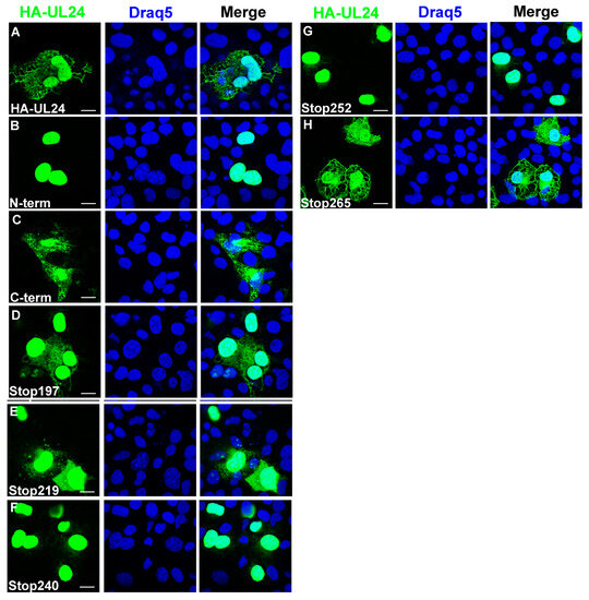 3.1. Residues in the C-Terminal Domain of UL24 Are Important for the Cytoplasmic Accumulation of UL24