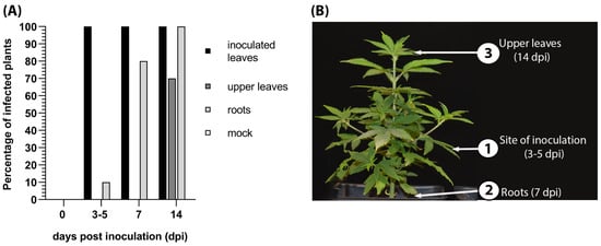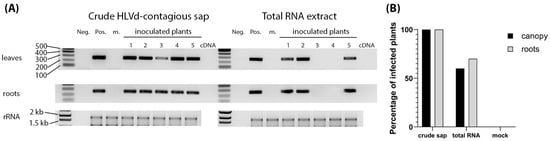 3.3. Infectivity of HLVd Inoculum and Its Distribution in Mature Hemp Plants