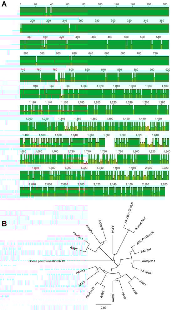 3.3. AAV.Bov.Guelph Capsid Protein Is Highly Similar to the Bovine AAV Capsid