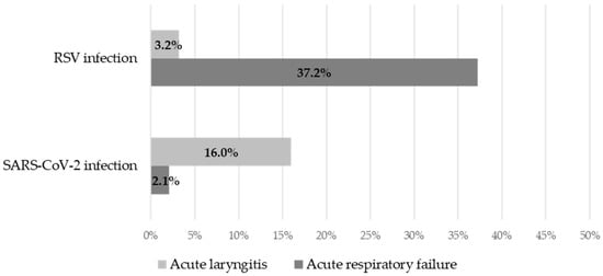 Miron, V.D.; Raianu, R.-O.; Filimon, C.; Craiu, M. Clinical Differences between SARS-CoV-2 and RSV Infections in Infants: Findings from a Case–Control Study. Viruses 2024, 16, 63. https://doi.org/10.3390/v16010063