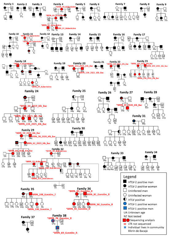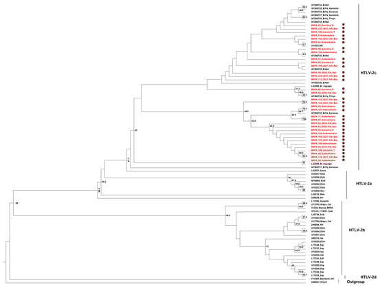 Abreu IN, Freitas FB, Sacuena ERP, Pereira Neto GdS, Botelho BJS, Lima CNC, Freitas VdO, Barbosa dos Santos M, Lima SS, Ishak R, et al. Intrafamilial Transmission of HTLV-1 and HTLV-2 in Indigenous Peoples of the Brazilian Amazon: Molecular Characterization and Phylogenetic Analysis. Viruses. 2024; 16(10):1525. https://doi.org/10.3390/v16101525