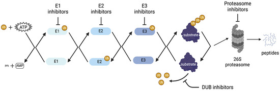 - Damgaard, R.B. The Ubiquitin System: From Cell Signalling to Disease Biology and New Therapeutic Opportunities. Cell Death Differ. 2021, 28, 423–426. [Google Scholar] [CrossRef] [PubMed]