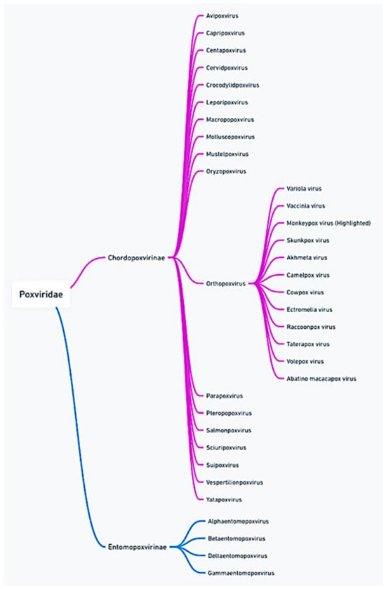 - Shchelkunov, S.N.; Totmenin, A.V.; Babkin, I.V. Human Monkeypox and smallpox viruses Genomic comparison. FEBS Lett. 2001, 509, 66–70. [Google Scholar] [CrossRef]