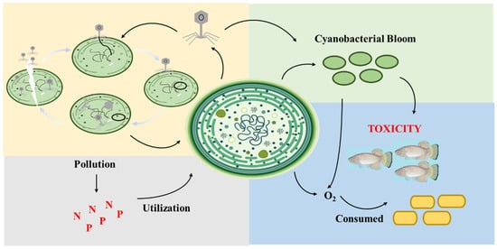 - Aranda, Y.N.; Bhatt, P.; Ates, N.; Engel, B.A.; Simsek, H. Cyanophage-cyanobacterial interactions for sustainable aquatic environment. Environ. Res. 2023, 229, 115728. [Google Scholar] [CrossRef] [PubMed]