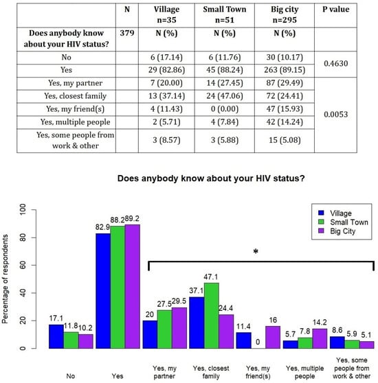 History of revealing HIV status stratified by the place of living. * p < 0.05.