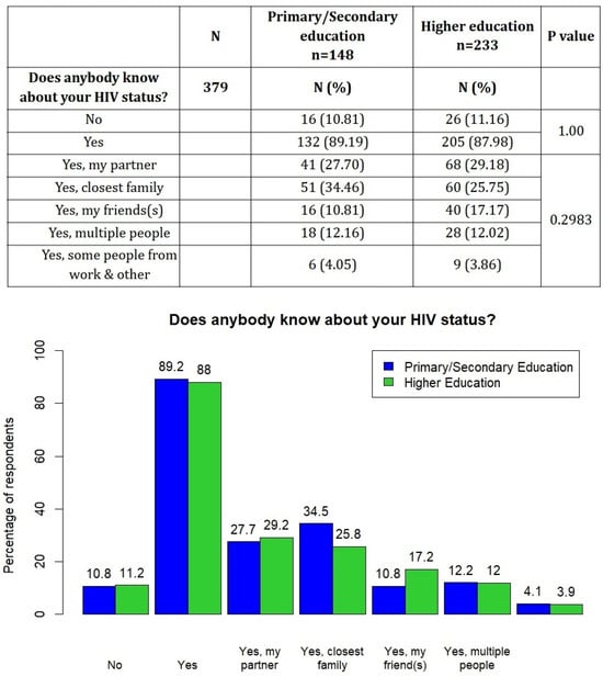 The tendency to disclose the HIV status did not depend on the respondents’ educational level (Figure 3).