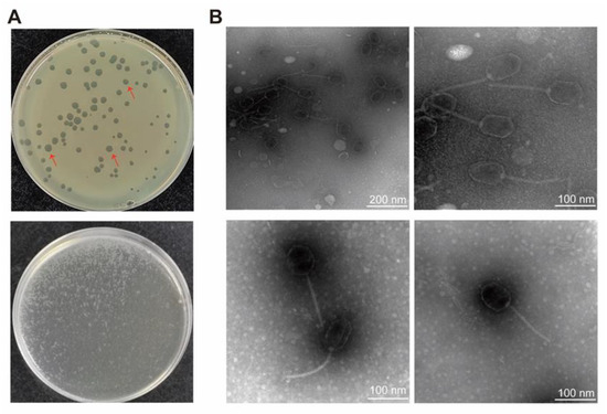 Phages are viruses that can infect and finally kill host bacteria. Phage therapy, which uses phages to treat bacterial infections, has been around for over a hundred years [6]. In the past 20 years, support from researchers and doctors has pushed the development of this field as a promising therapy in the context of the rise of antimicrobial resistance worldwide [7]. Phage cocktails combined with antibiotics have been applied in the treatment of multiple antibiotic resistance strains due to escape colonies usually appearing and becoming dominant, and successful cases of phage therapy have been reported in different regions [8,9,10,11,12,13]. However, several factors including the efficiency of killing, whether the phages are lytic or not, and the side effects of phages, should be taken into consideration before the use of phage for treatment [14]. Thus, more phage resources should be isolated and their infection model should be elucidated before using it in phage therapy.