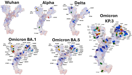 - Branda, F.; Ciccozzi, M.; Scarpa, F. Features of the SARS-CoV-2 KP. 3 variant mutations. Infect. Dis. 2024, 56, 894–896. [Google Scholar] [CrossRef]