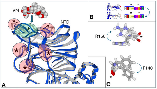 3.5. Structural Variations of the Ivermectin Binding Site in the NTD of SARS-CoV-2 Variants