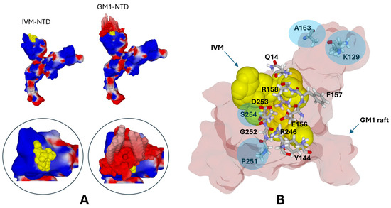 3.4. The Ivermectin Binding Site Occupies a Large Part of the GM1-Binding Domain of the NTD
