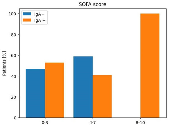 Furthermore, no differences were found between populations with and without IgA and a lower SOFA score. A patient with a higher SOFA score and with anti-SARS-CoV-2-IgA had a fatal outcome.