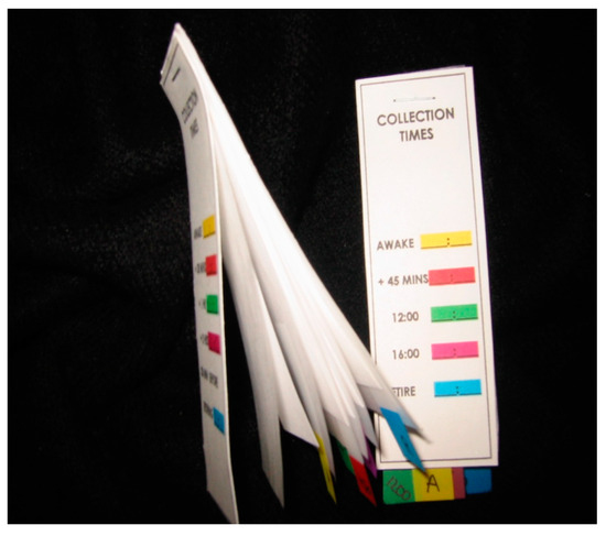 Because of our unique research environment and the link between stress, immunity, and viral reactivation, we devised a collection tool for the collection of human saliva samples for stress hormone assessments. This tool can be used at any remote location, including space, and does not require any special conditions for storage. Saliva samples are collected on filter paper and dried at room temperature. We developed a packaging appliance for these filters that was compact and easy to use, specifically for NASA, called the Saliva Procurement and Integrated Testing (SPIT) booklets (Figure 1). These booklets are being used to collect and store saliva samples from International Space Station crewmembers before, during, and after the spaceflight.
