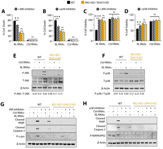 3.4. MAPK Signaling Induced by RNase L-Cleaved RNAs Is Required for DHX15-Rig-I-MAVS-Mediated Apoptosis