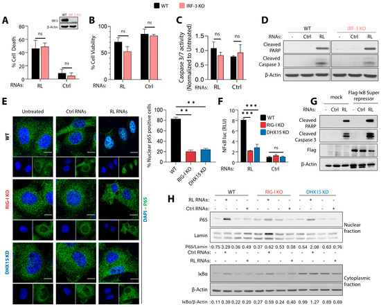 3.5. Apoptosis Induced by RNase L-Cleaved RNAs Is Independent of IRF-3 and NF-κB Signaling