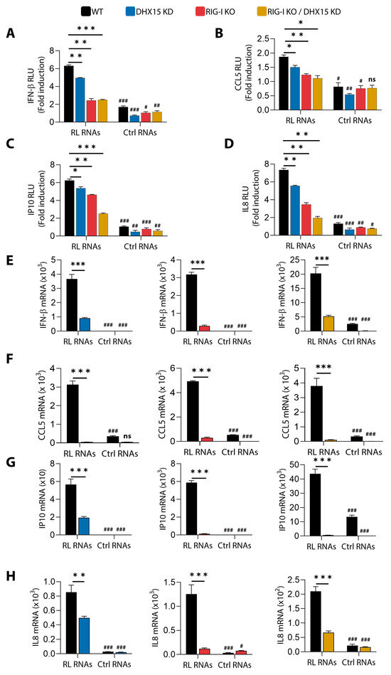 3.6. Induction of IFN and Proinflammatory Cytokines by RNase L-Cleaved RNAs Is Dependent on DHX15 and Rig-I