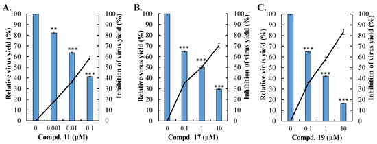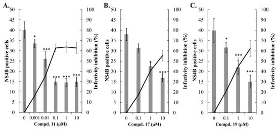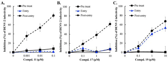 3.5. Anti-DENV-2 Action of Compounds 11, 17, and 19