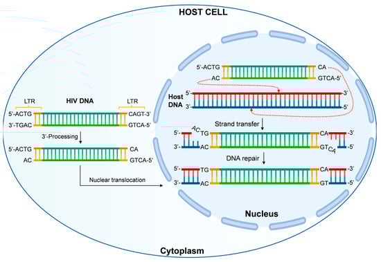 - Craigie, R. Nucleoprotein Intermediates in HIV-1 DNA Integration: Structure and Function of HIV-1 Intasomes. Subcell. Biochem. 2018, 88, 189–210. [Google Scholar] [CrossRef] [PubMed]