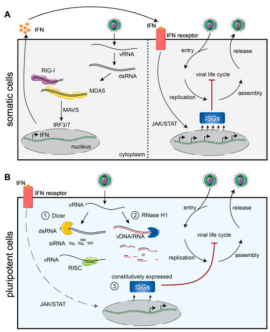 - Wu, X.; Kwong, A.C.; Rice, C.M. Antiviral Resistance of Stem Cells. Curr. Opin. Immunol. 2019, 56, 50–59. [Google Scholar] [CrossRef]