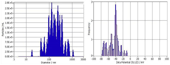 ZetaView nanoparticle tracking analysis was performed according to a method described previously [23,24]. The particle size distribution and concentration were measured using the ZetaView x20 (Particle Metrix, Meerbusch, Germany) and corresponding software. The measuring range for particle diameter is 10–2000 nm. These samples were diluted by the same volume of 1×PBS and then loaded into the cell. Particle information was collected from the instrument at 11 different positions across the cell, with two cycles of readings. The standard operating procedure was set to a temperature of 23 °C, a sensitivity of 70, a frame rate of 30 frames per second, and a shutter speed of 100. The post-acquisition parameters were set to a minimum brightness of 20, a maximum area of 1000, a minimum area of 10, and the trace length of 15 [24].