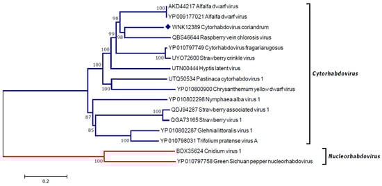 3.2. Molecular Characterization of the New Coriander Cytorhabdovirus