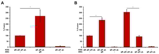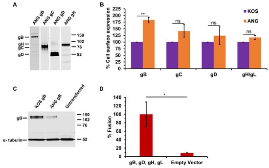 3.5. HSV-1 ANG Alleles of gD or gH/gL Do Not Alter Cell–Cell Fusion