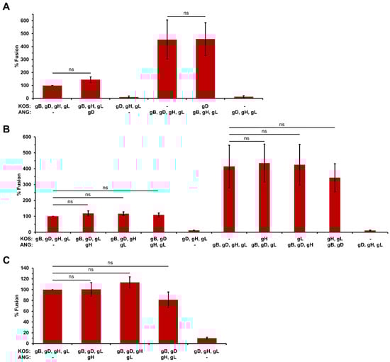 3.3. HSV-1 ANG gB, gD, gH, and gL Are Sufficient for Cell–Cell Fusion