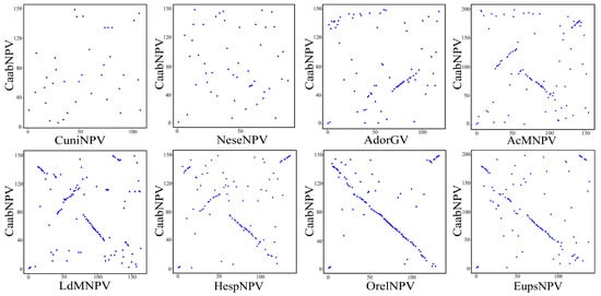 Gene parity plots were generated to compare ORF organization between CaabNPV and the selected baculoviruses [17].