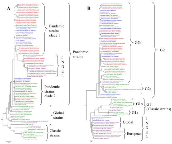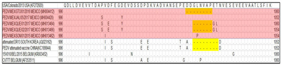 The following supporting information can be downloaded at https://www.mdpi.com/article/10.3390/v16020309/s1, Figure S1: Phylogenetic analyses of mexican PEDV spike protein sequences.