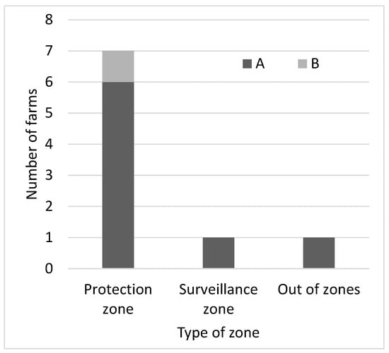 Under the European Union (EU) legislation, African swine fever (ASF) is classified as a “Category A” disease. By definition, diseases within this category do not normally occur in the EU and immediate eradication measures must be taken as soon as they are detected [,]. One of these immediate measures is the establishment of a restriction zone around the outbreak farm, a proven effective animal disease control tool that has been used in the EU since the early 1980s, particularly for highly contagious diseases—such as classical swine fever (CSF) or foot and mouth disease (FMD)—that can spread rapidly from farm to farm and cause numerous secondary outbreaks [,].